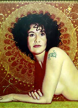 "AMANDA ARGHIROS" - Acrylic painting with bronze powder. Portrait commission SOLD